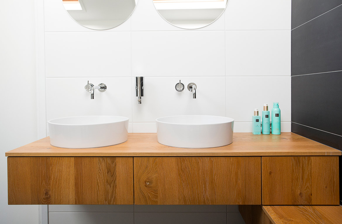 De opdrachtgever wilde een strakke, basic lijnvoering. Moderne en tijdloze badkamers, met een luxueuze uitstraling en warme accenten. Het eindresultaat past perfect bij het motto van Philippo: exclusieve badkamers, design tot in de details.