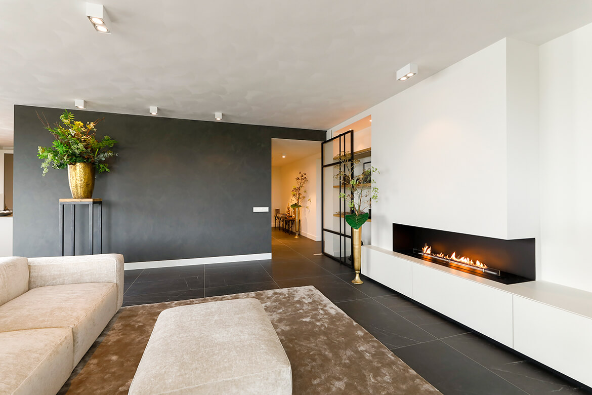 - Het door onze meubelmaker laten vervaardigen en plaatsen van een maatwerkmeubel met een geïntegreerde sfeerhaard (gelhaard)