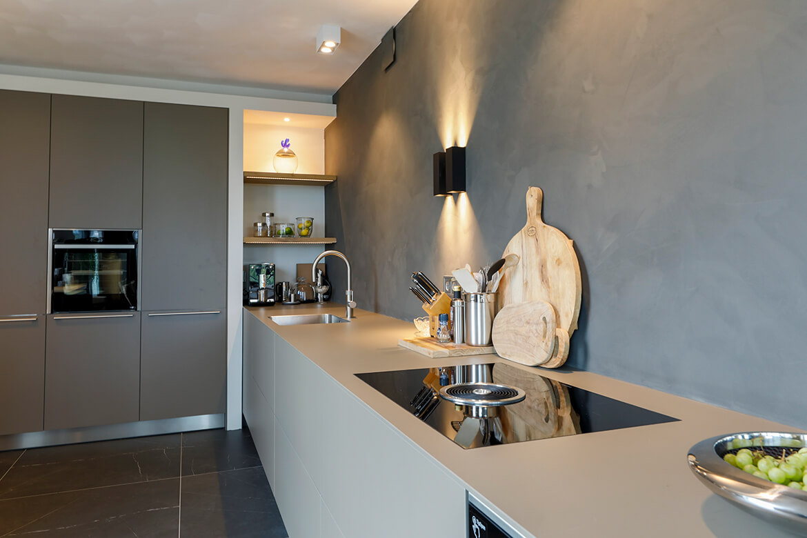 - In samenwerking met een van onze relaties het leveren en monteren van een antracietkleurige keuken op maat, voorzien van diverse inbouwapparatuur. We verzorgden ook de complete installatie